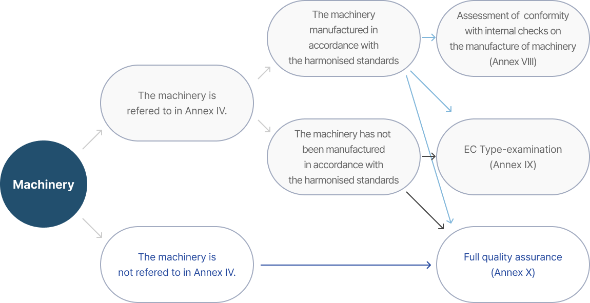 움직이는 구성품이 포함된 기계와 기계설비에 적용됩니다. 또한, 사람을 태워 올리거나 운반하는 기계와 기계의 안전부품에도 해당됩니다.